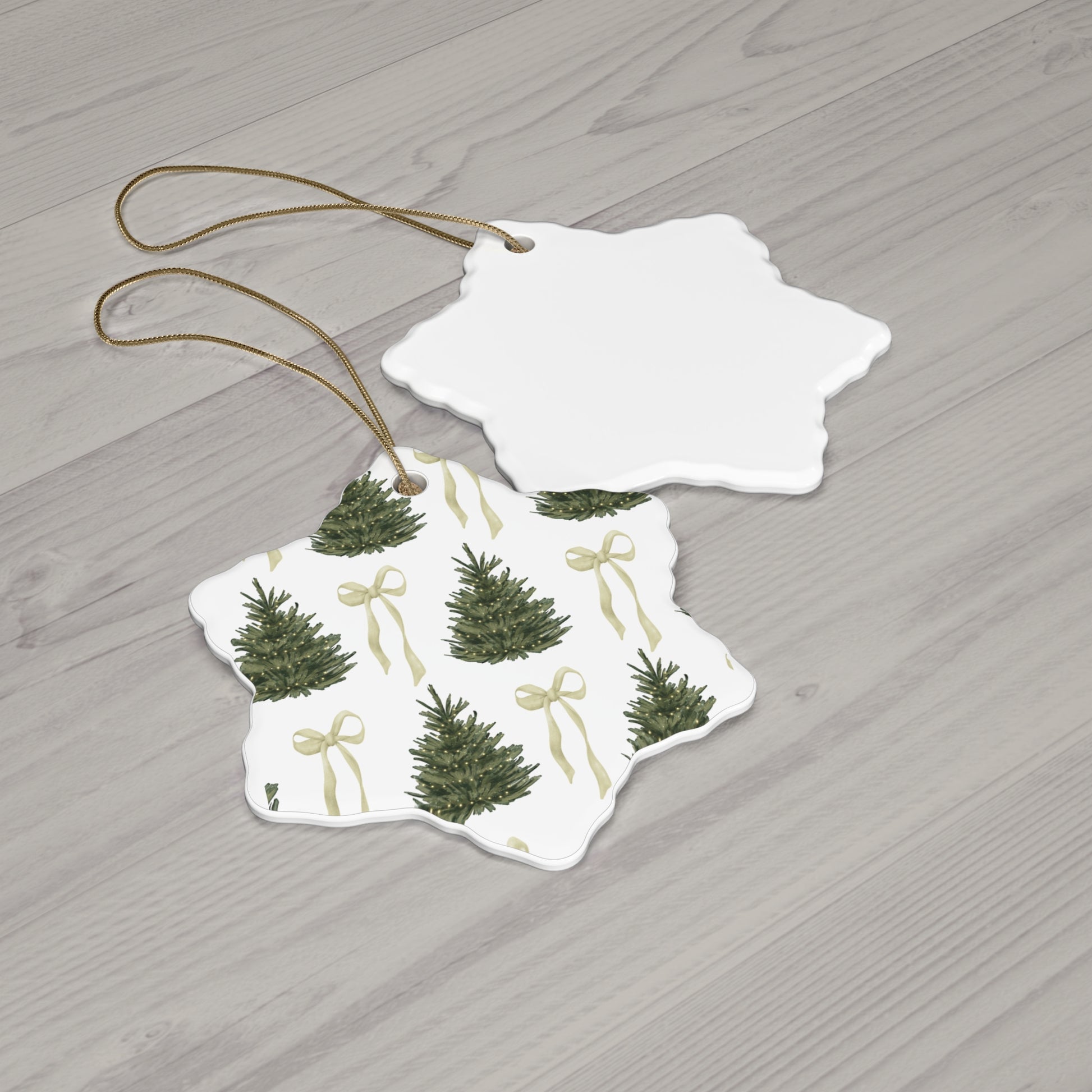 Elevate your holiday decor with this charming ceramic ornament, a perfect blend of timeless tradition and the trending coquette aesthetic. This piece captures the magic of a cozy Christmas with a playful, feminine twist. Custom-made Christmas ornaments can be the perfect heirloom to use year after year, generation after generation. The ceramic ornaments are available in snowflake and circle for you to choose from.