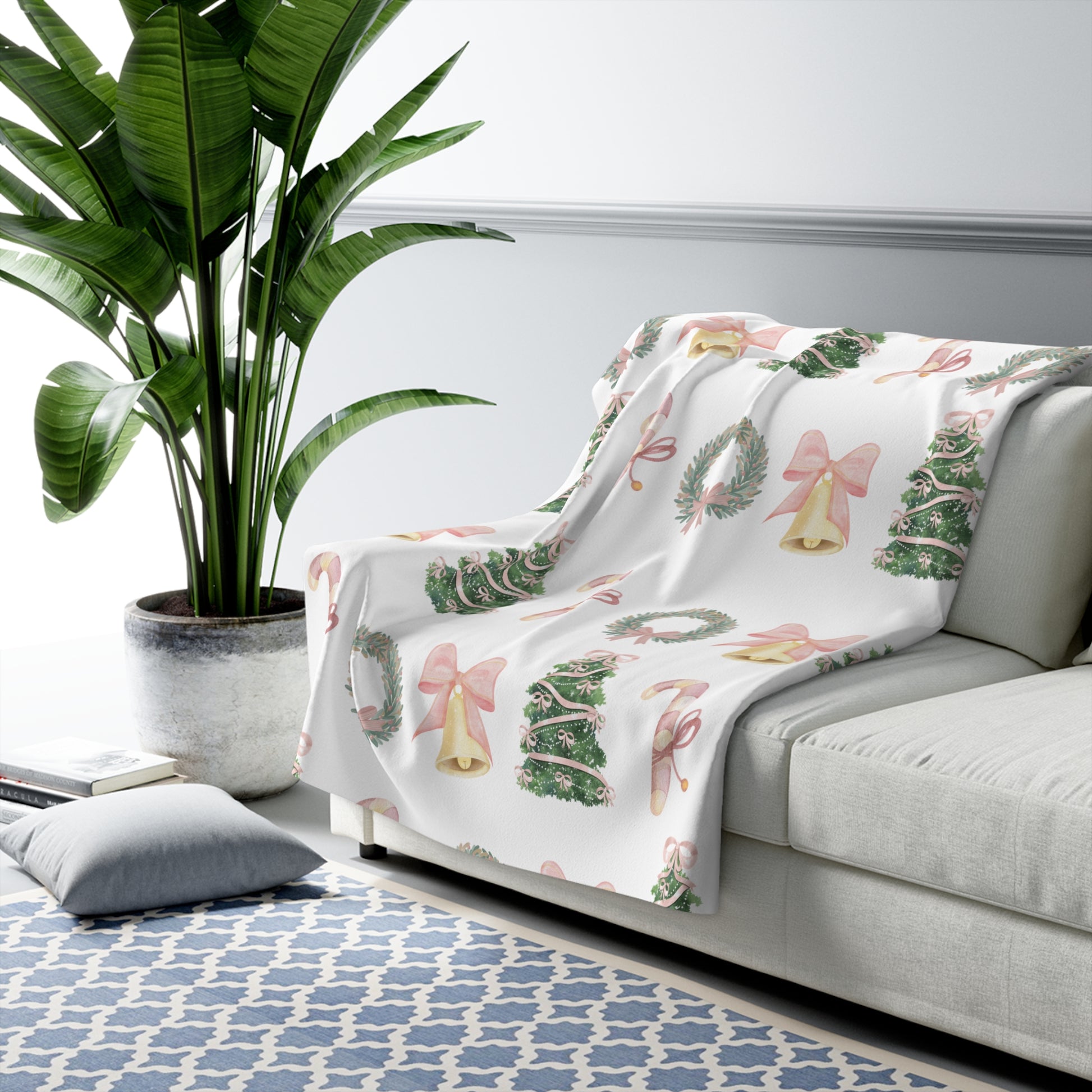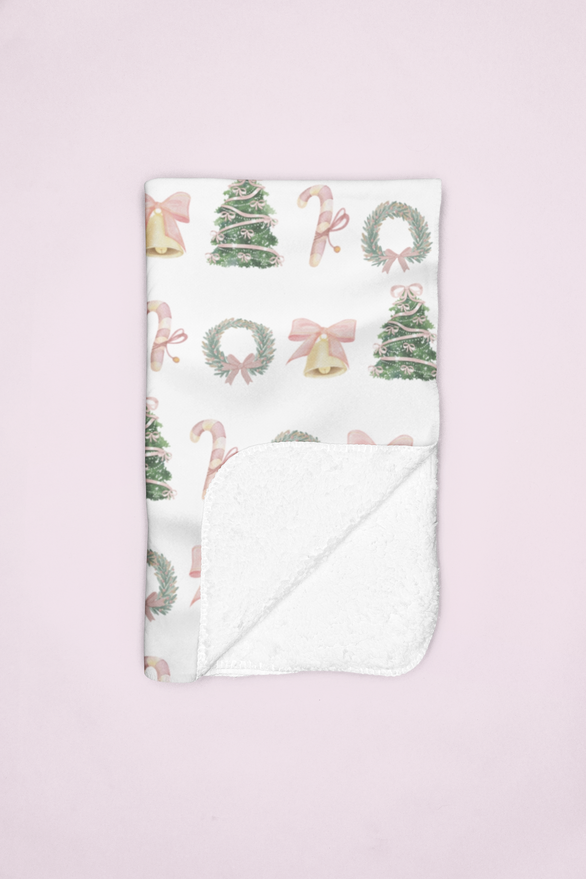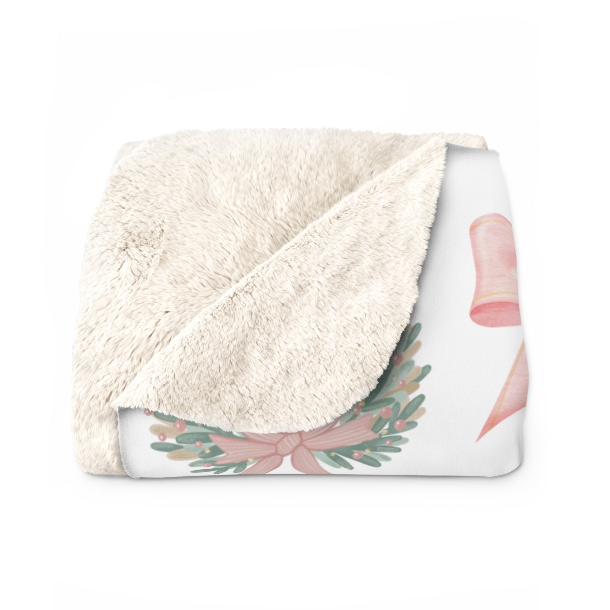 Pastel Christmas Sherpa Blanket – Wreaths, Trees & Candy Canes Holiday Throw