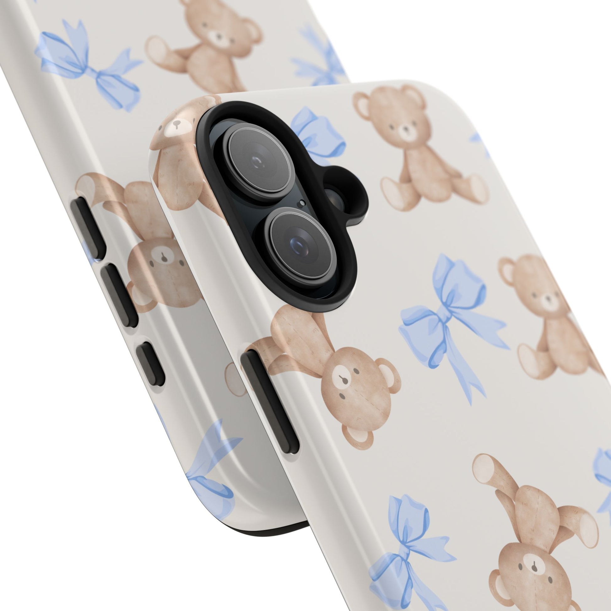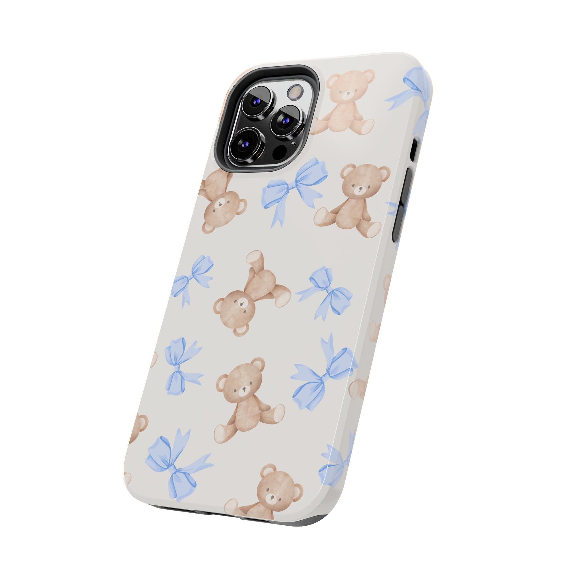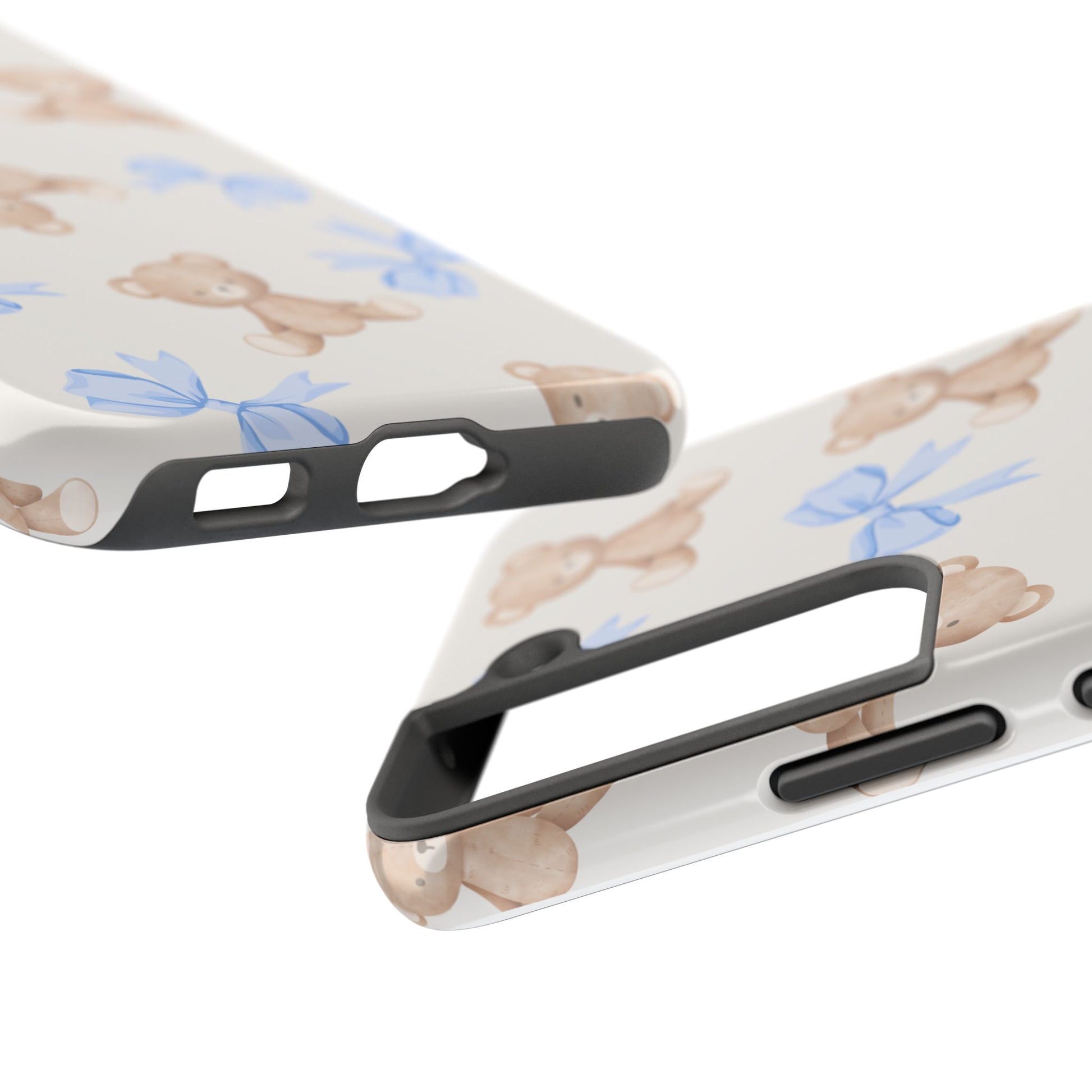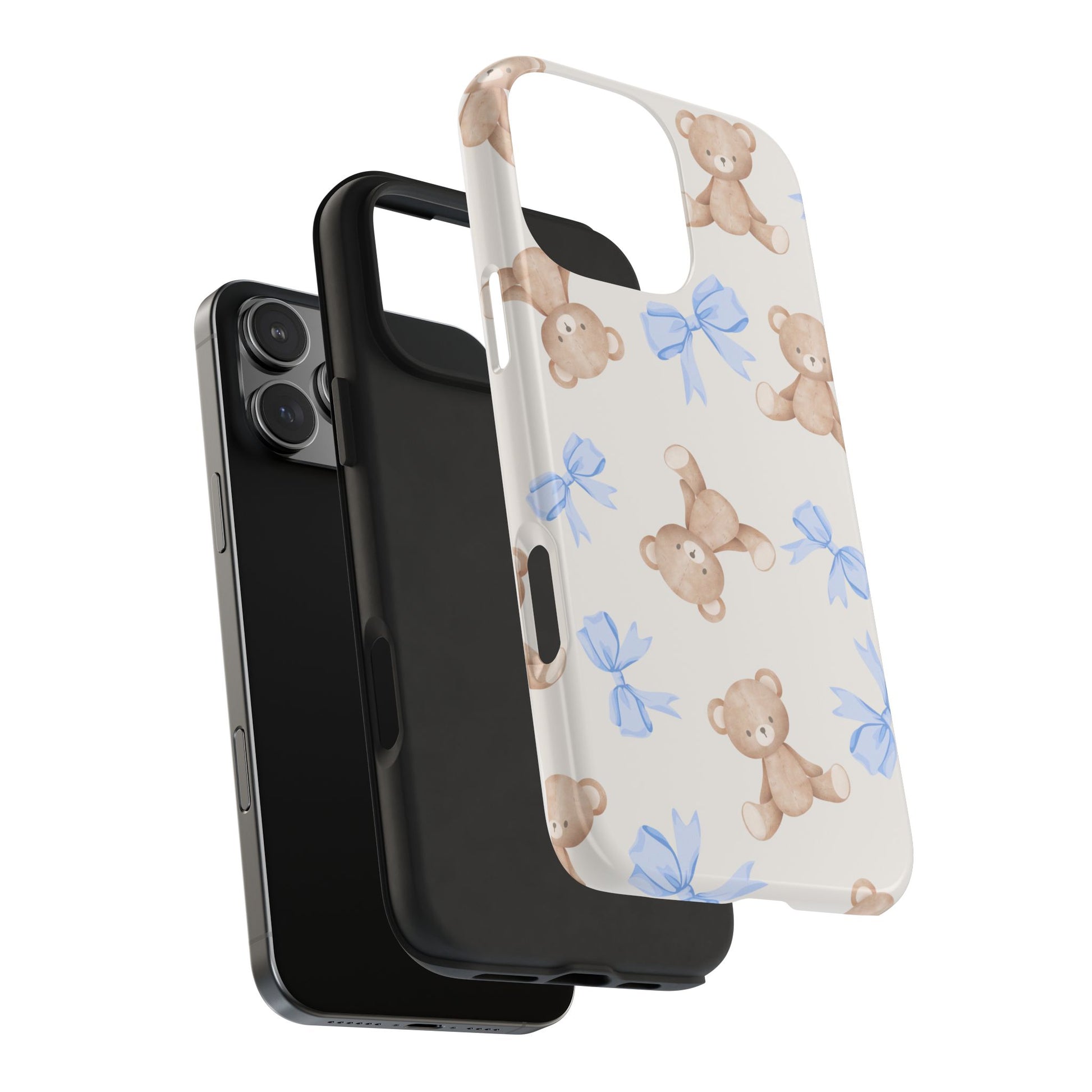 Teddy Bear Pattern Tough Phone Case — Cute Blue Bows