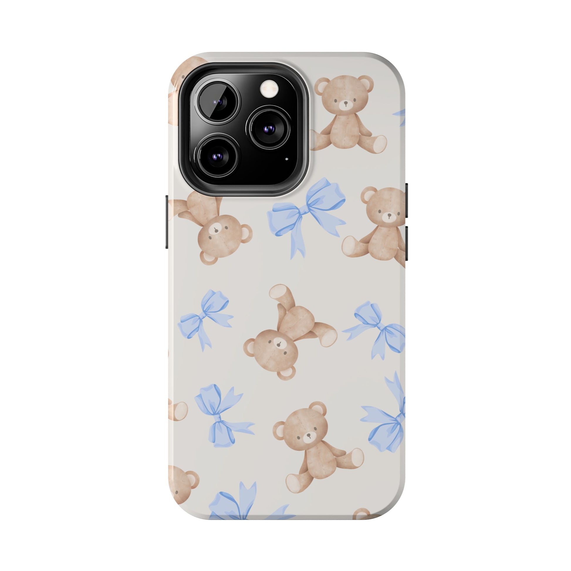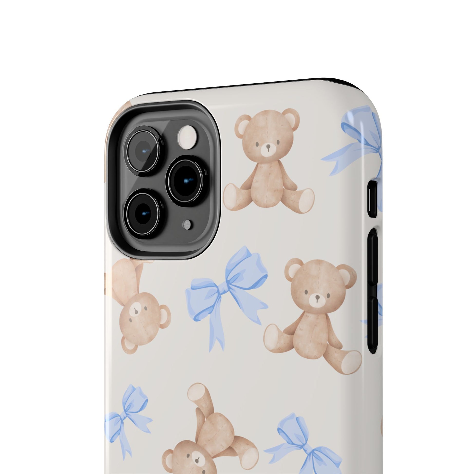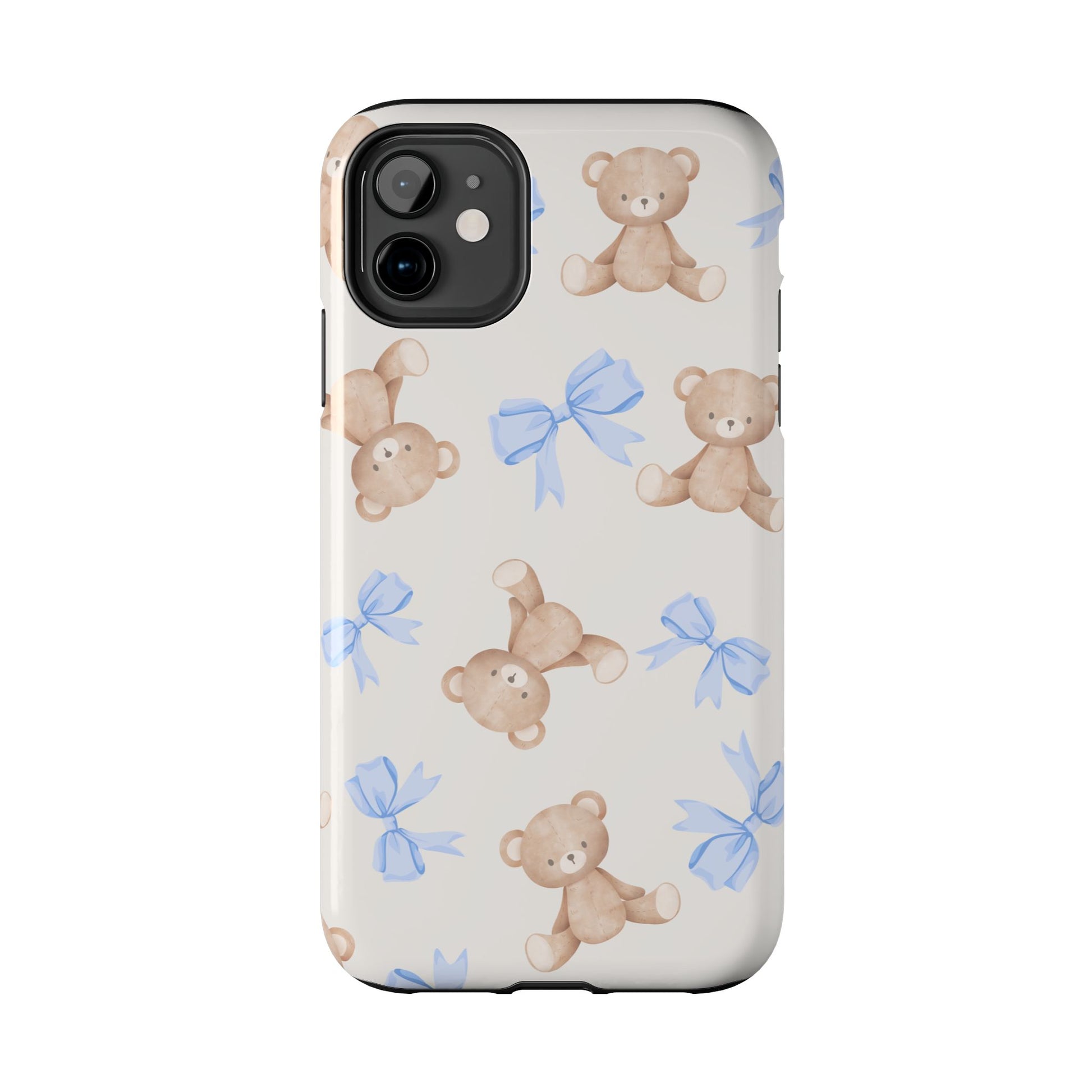 Teddy Bear Pattern Tough Phone Case — Cute Blue Bows