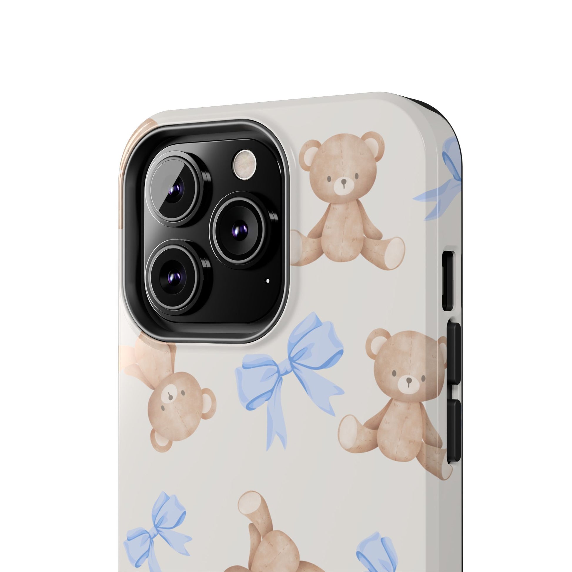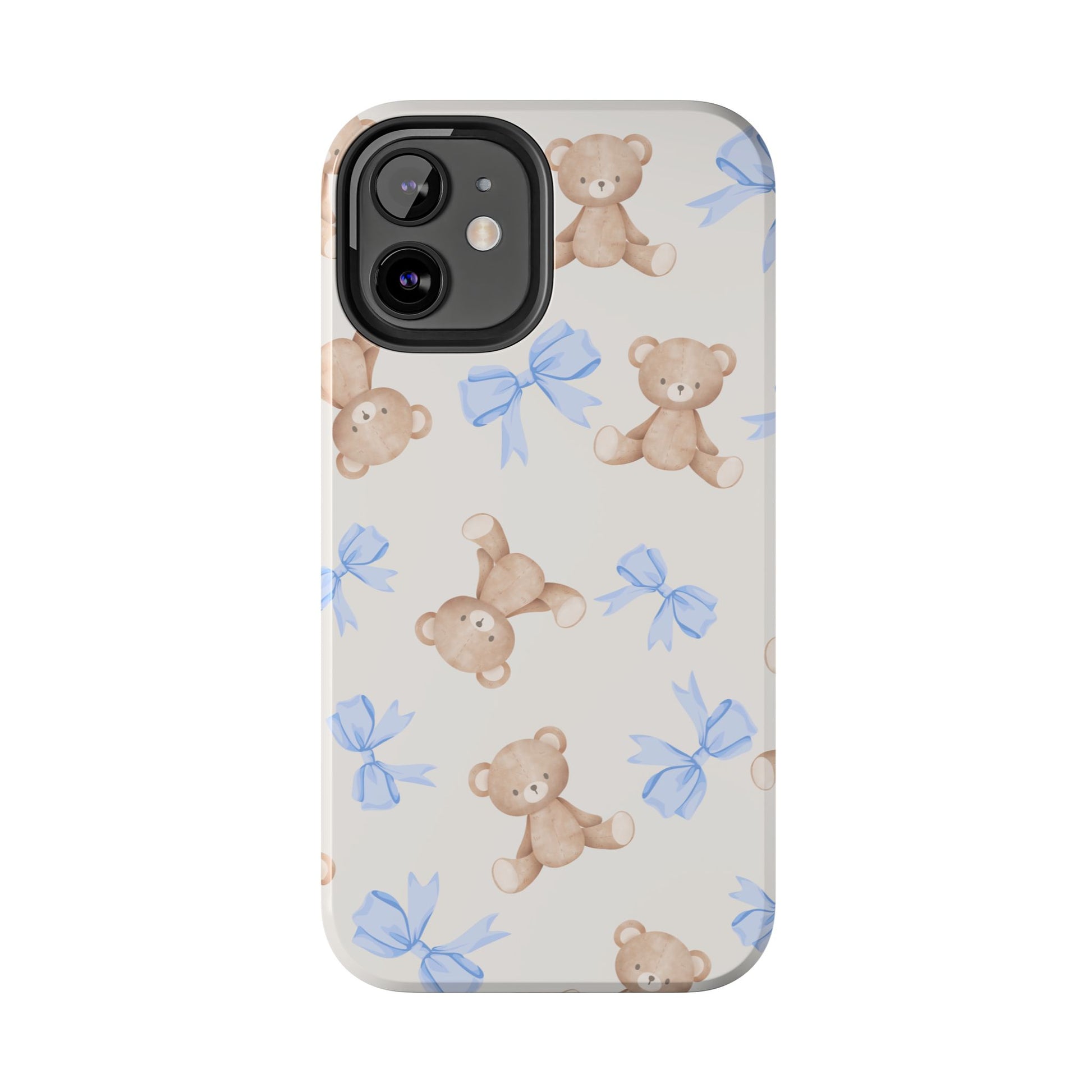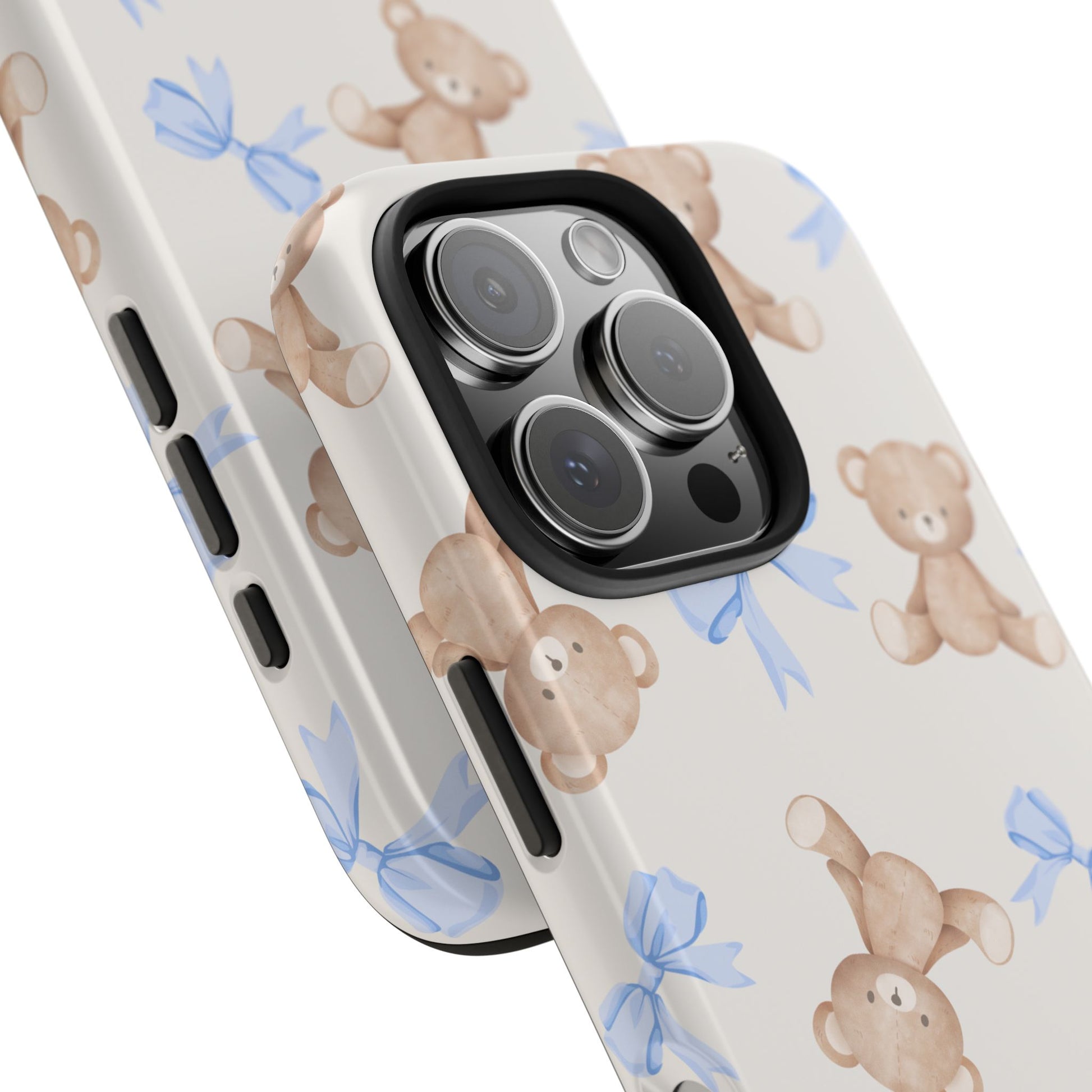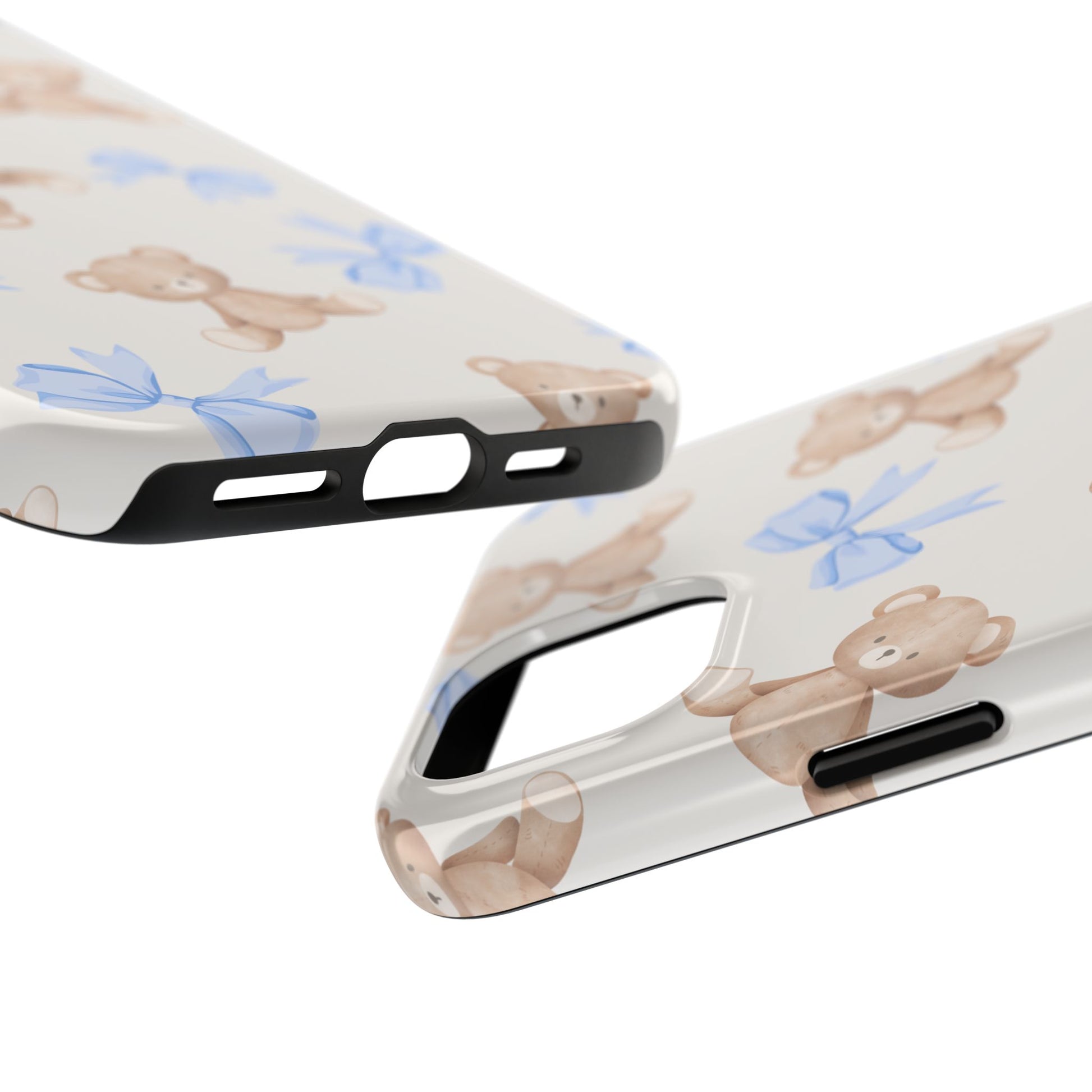 Teddy Bear Pattern Tough Phone Case — Cute Blue Bows